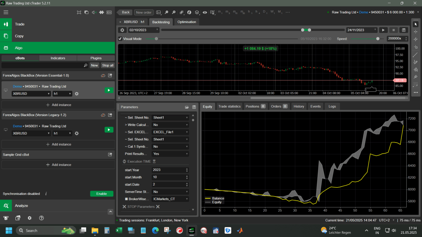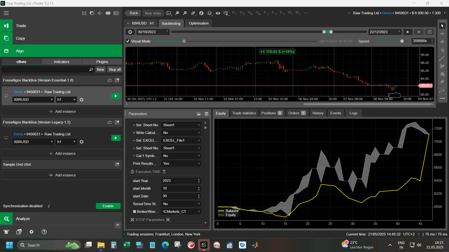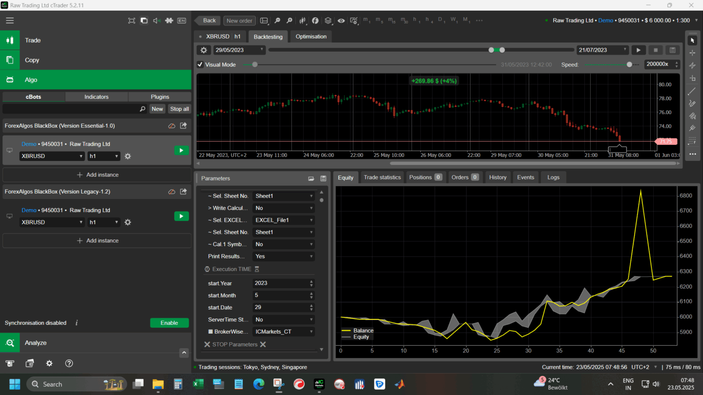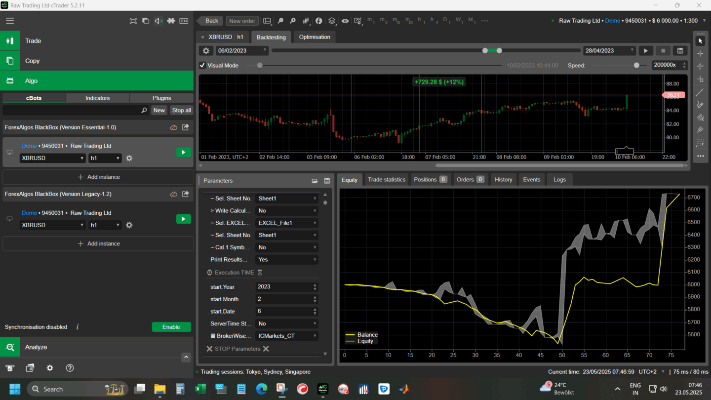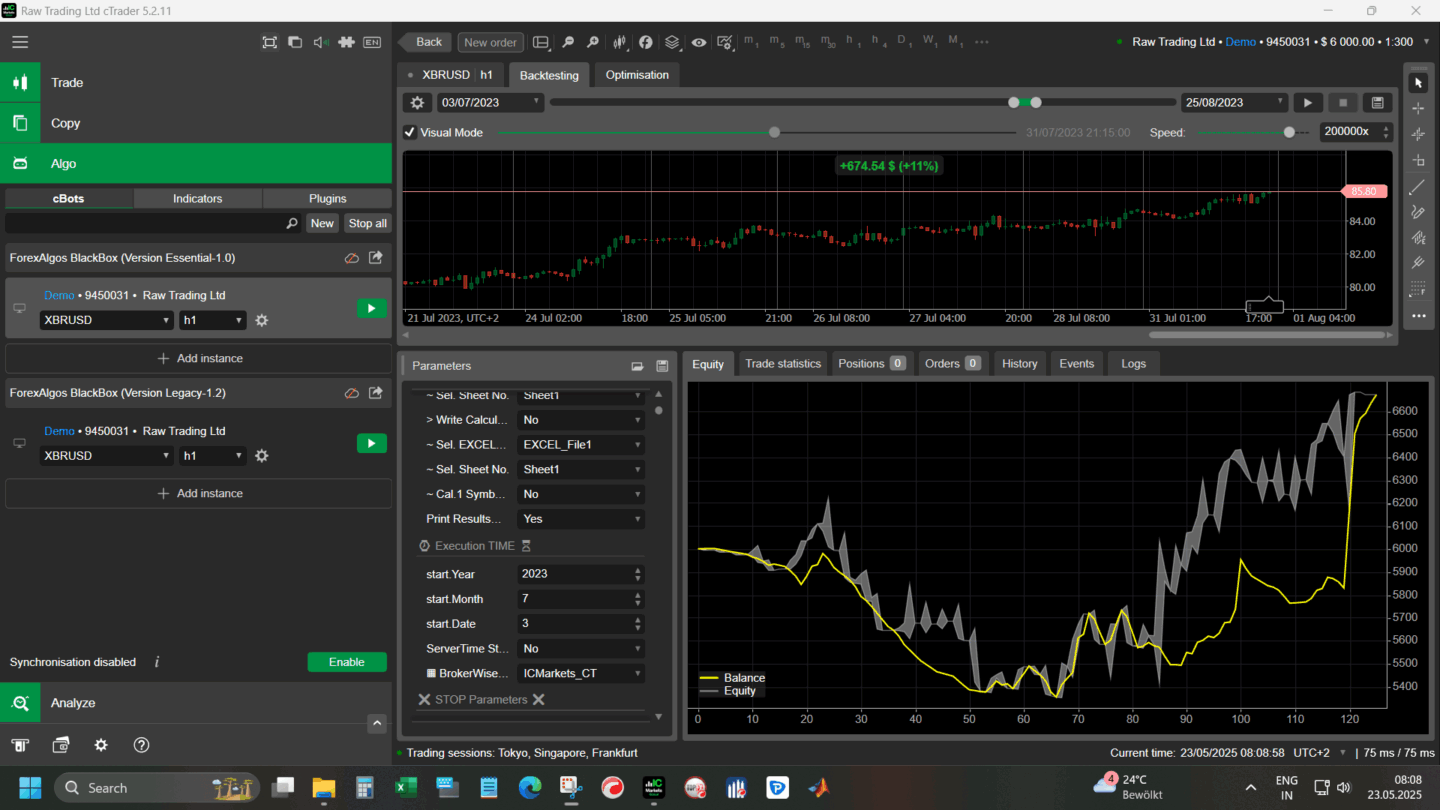 Backtest Results. At ForexAlgos, we believe that trust is built on evidence. That’s why our AI-powered trading system—ForexAlgos BlackBox—comes with detailed, independently verifiable backtest results for the years 2023, 2024, and 2025. We want prospective and current members to know that our performance claims are not based on vague estimations, marketing hype, or cherry-picked trades. Instead, we present structured, transparent data from rigorously backtested trade sessions across three consecutive years.