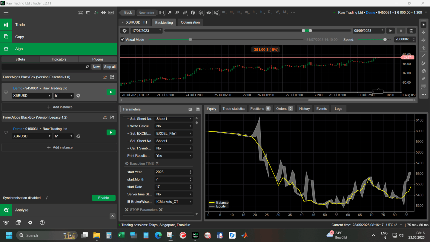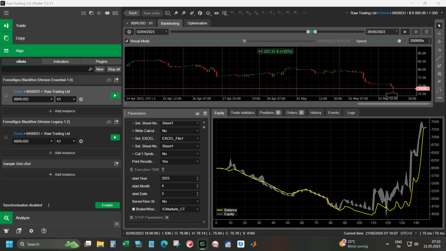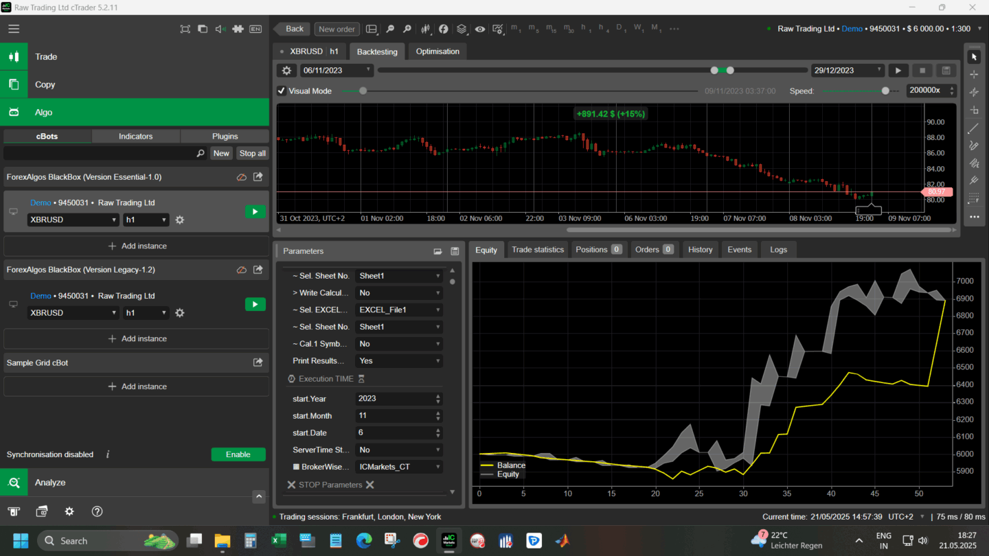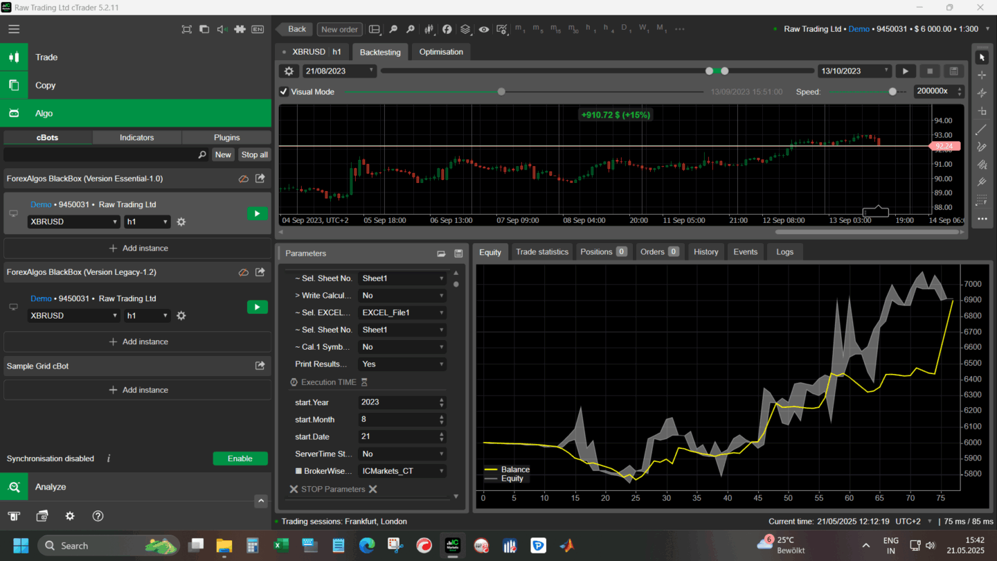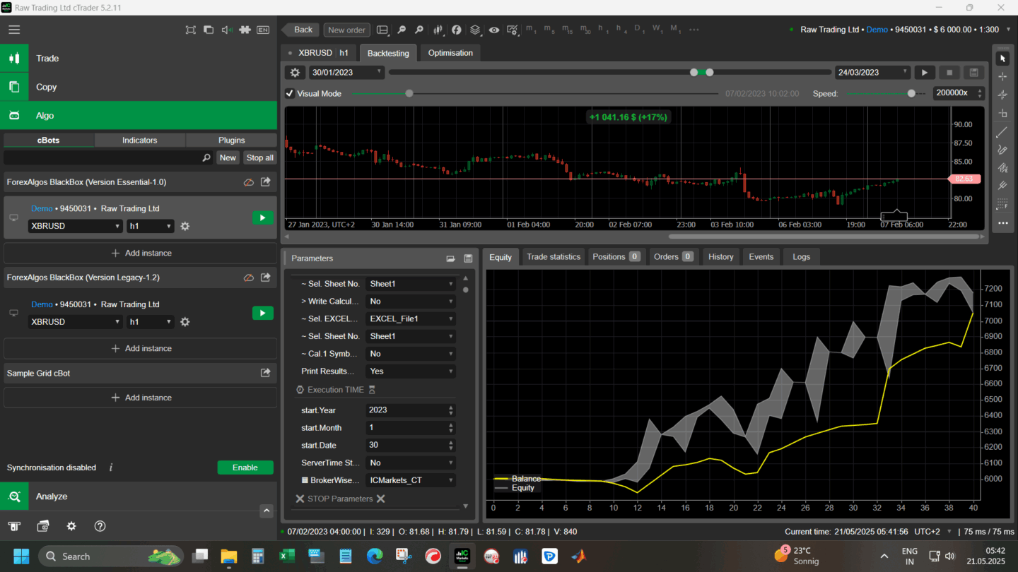 Backtest Results. At ForexAlgos, we believe that trust is built on evidence. That’s why our AI-powered trading system—ForexAlgos BlackBox—comes with detailed, independently verifiable backtest results for the years 2023, 2024, and 2025. We want prospective and current members to know that our performance claims are not based on vague estimations, marketing hype, or cherry-picked trades. Instead, we present structured, transparent data from rigorously backtested trade sessions across three consecutive years.