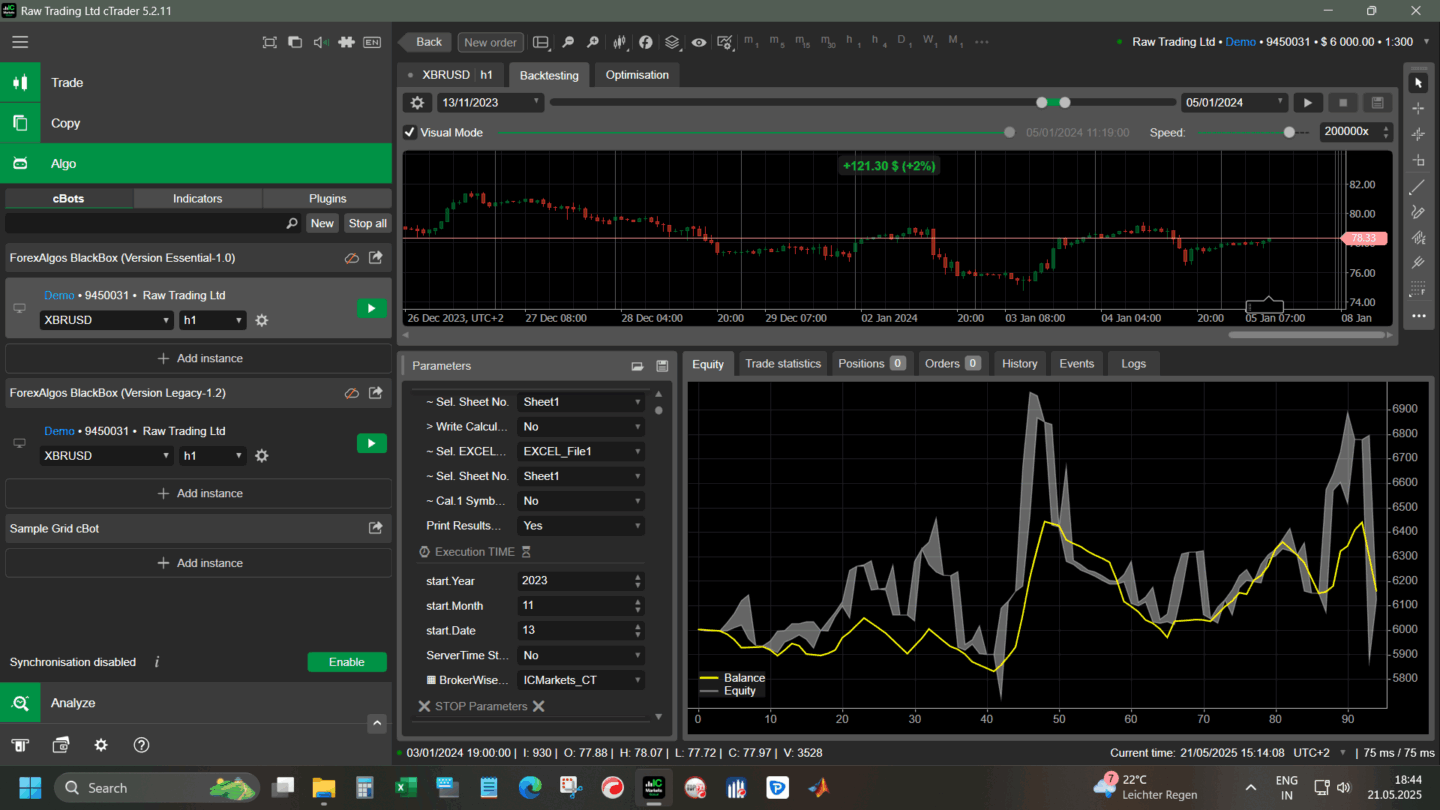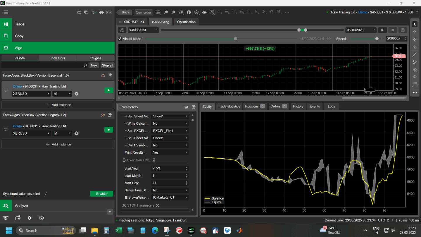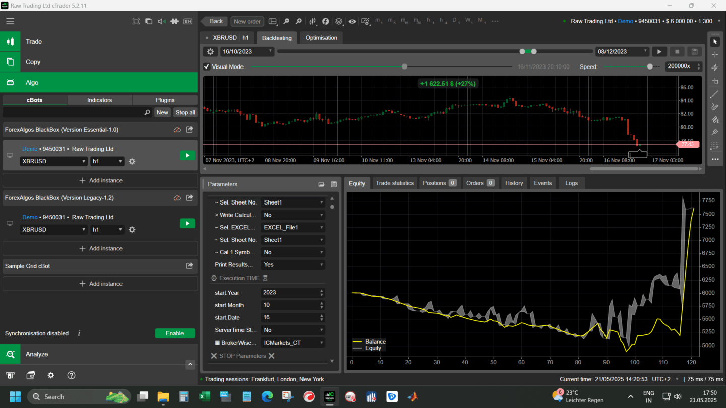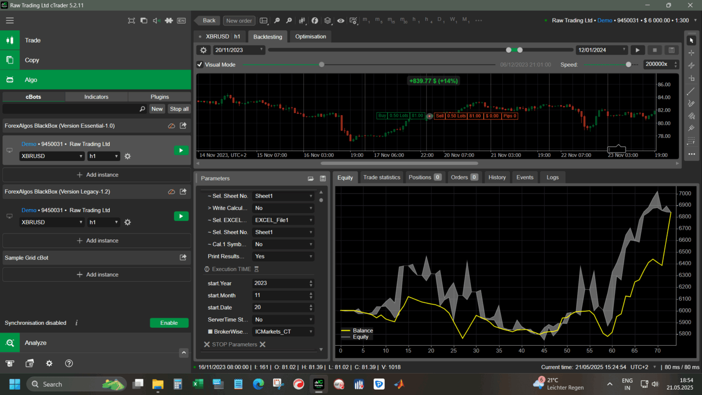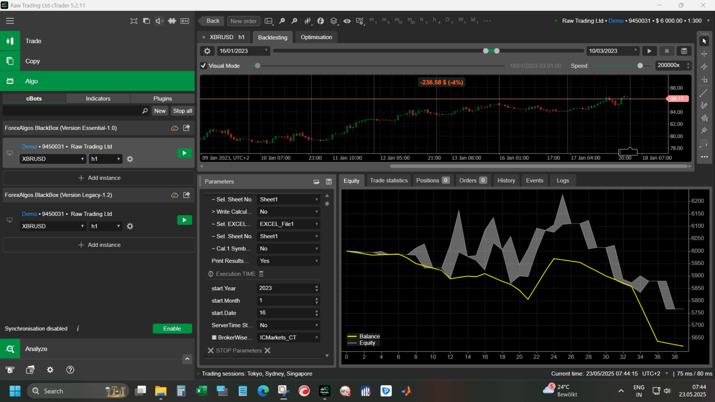 Backtest Results. At ForexAlgos, we believe that trust is built on evidence. That’s why our AI-powered trading system—ForexAlgos BlackBox—comes with detailed, independently verifiable backtest results for the years 2023, 2024, and 2025. We want prospective and current members to know that our performance claims are not based on vague estimations, marketing hype, or cherry-picked trades. Instead, we present structured, transparent data from rigorously backtested trade sessions across three consecutive years.