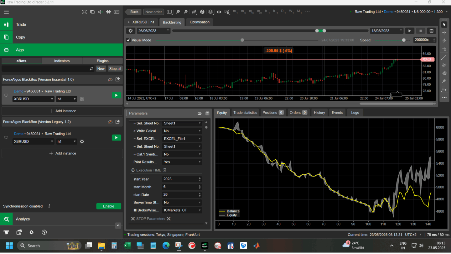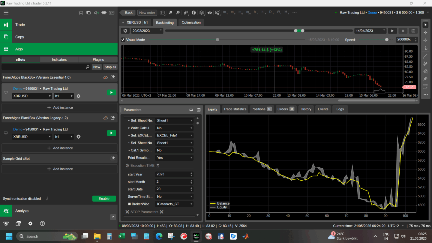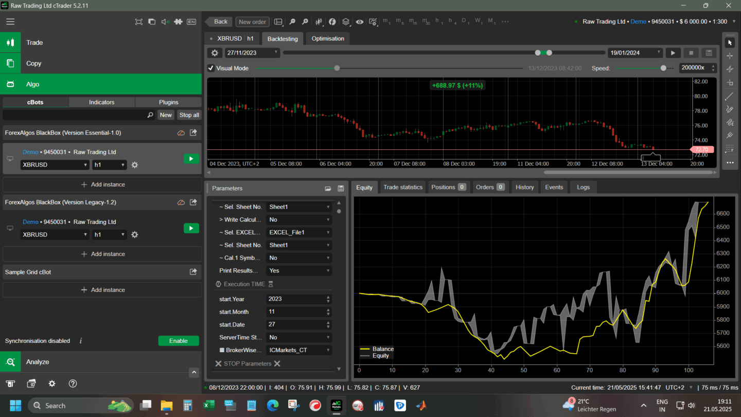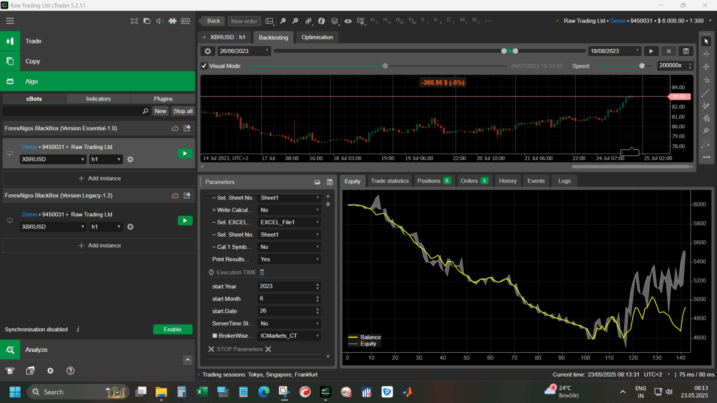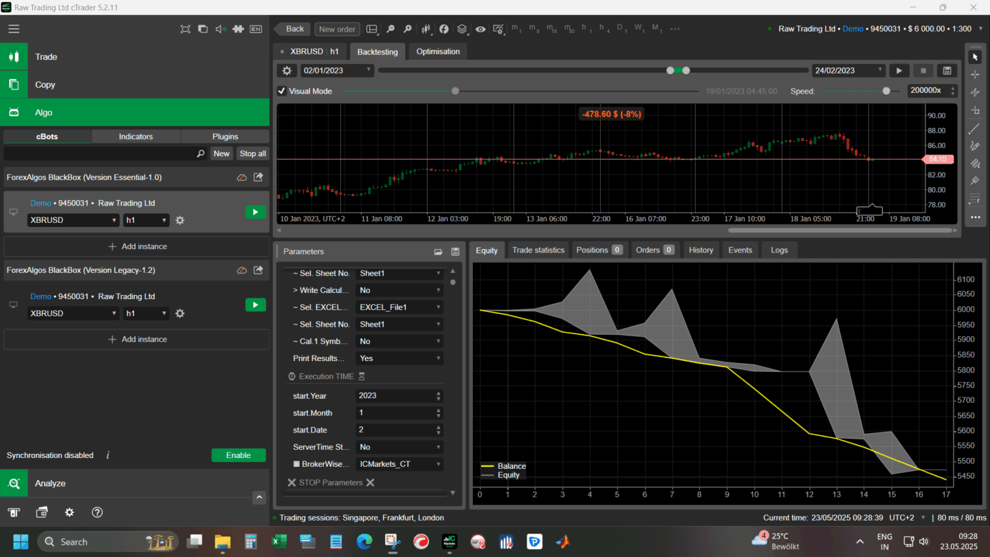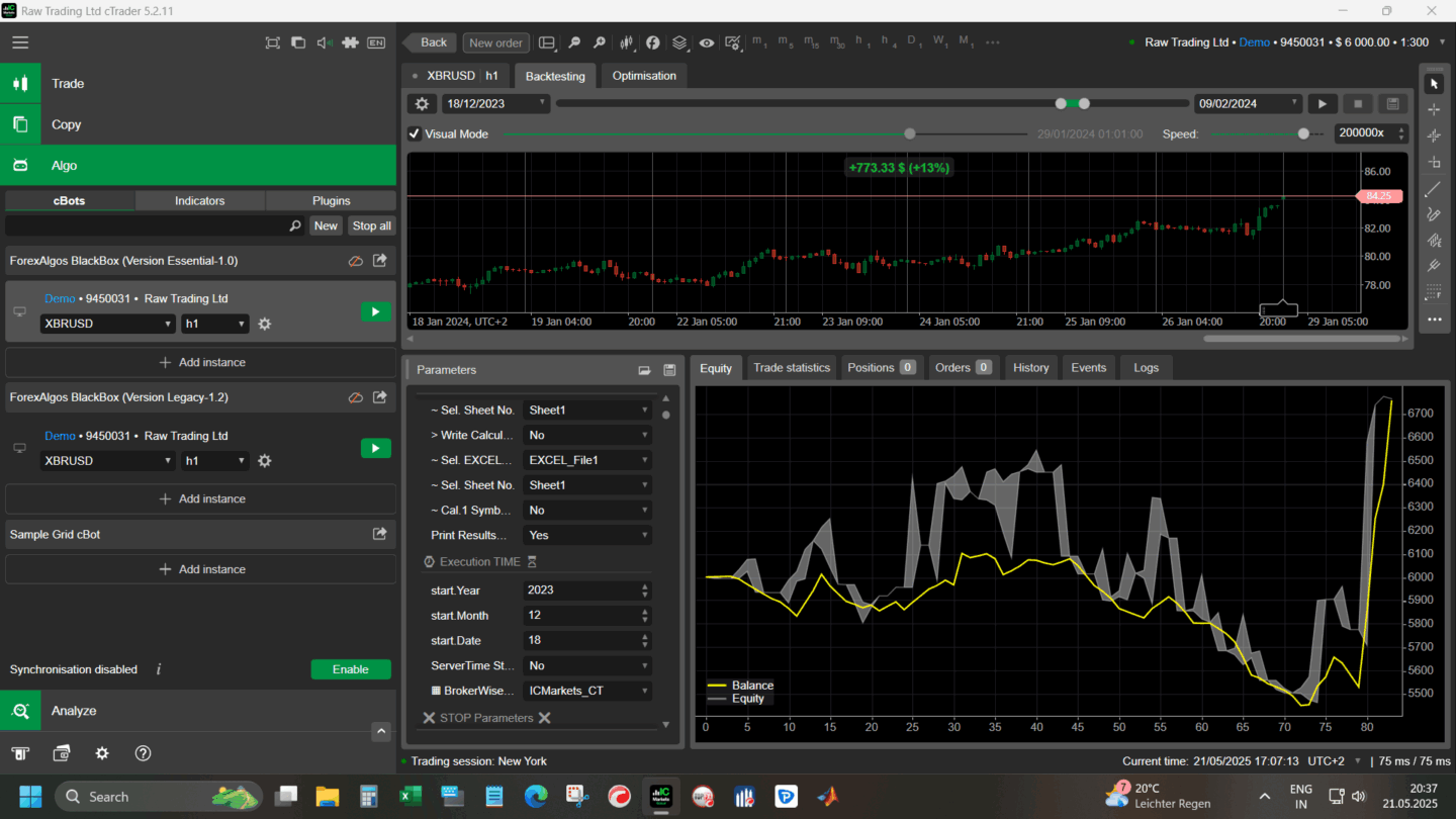 Backtest Results. At ForexAlgos, we believe that trust is built on evidence. That’s why our AI-powered trading system—ForexAlgos BlackBox—comes with detailed, independently verifiable backtest results for the years 2023, 2024, and 2025. We want prospective and current members to know that our performance claims are not based on vague estimations, marketing hype, or cherry-picked trades. Instead, we present structured, transparent data from rigorously backtested trade sessions across three consecutive years.