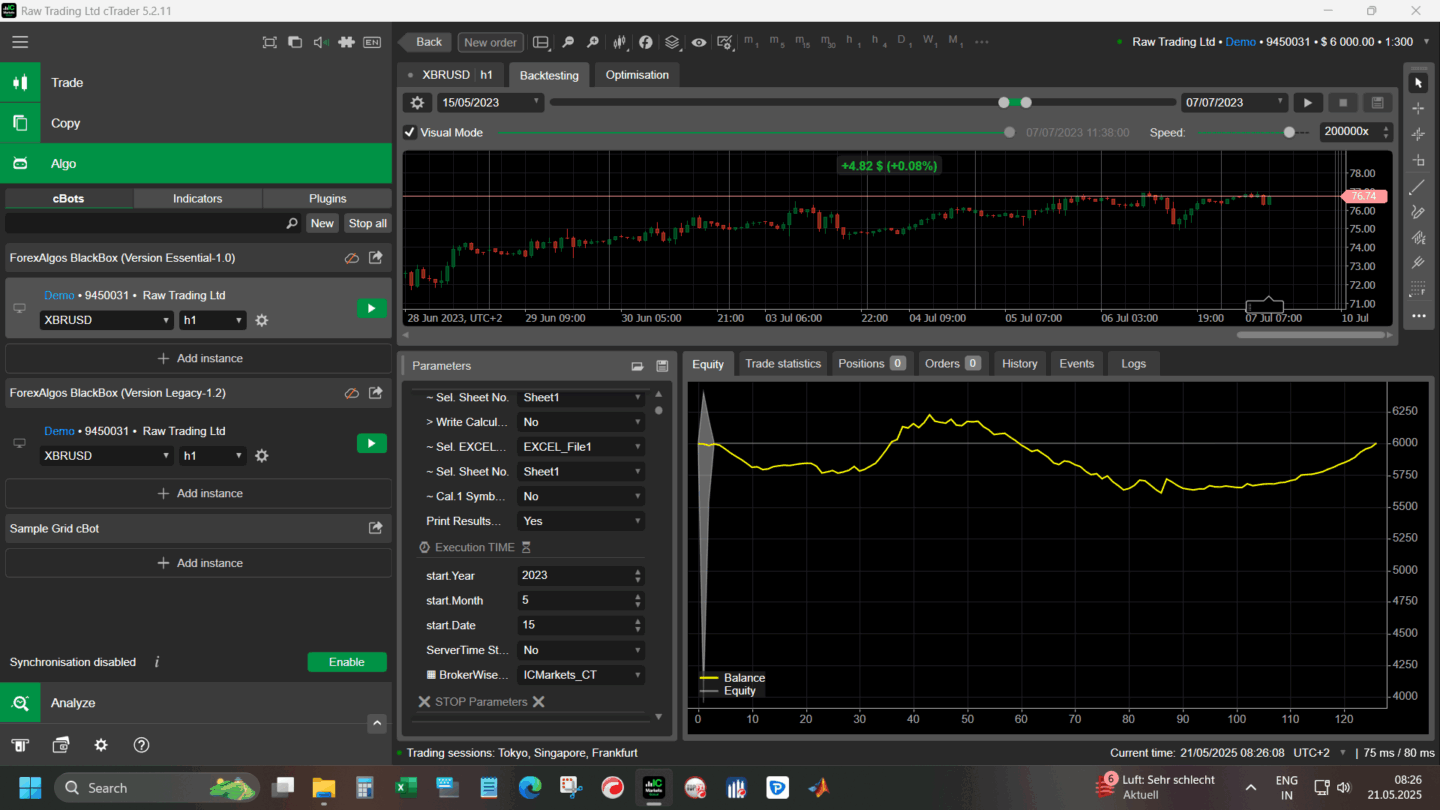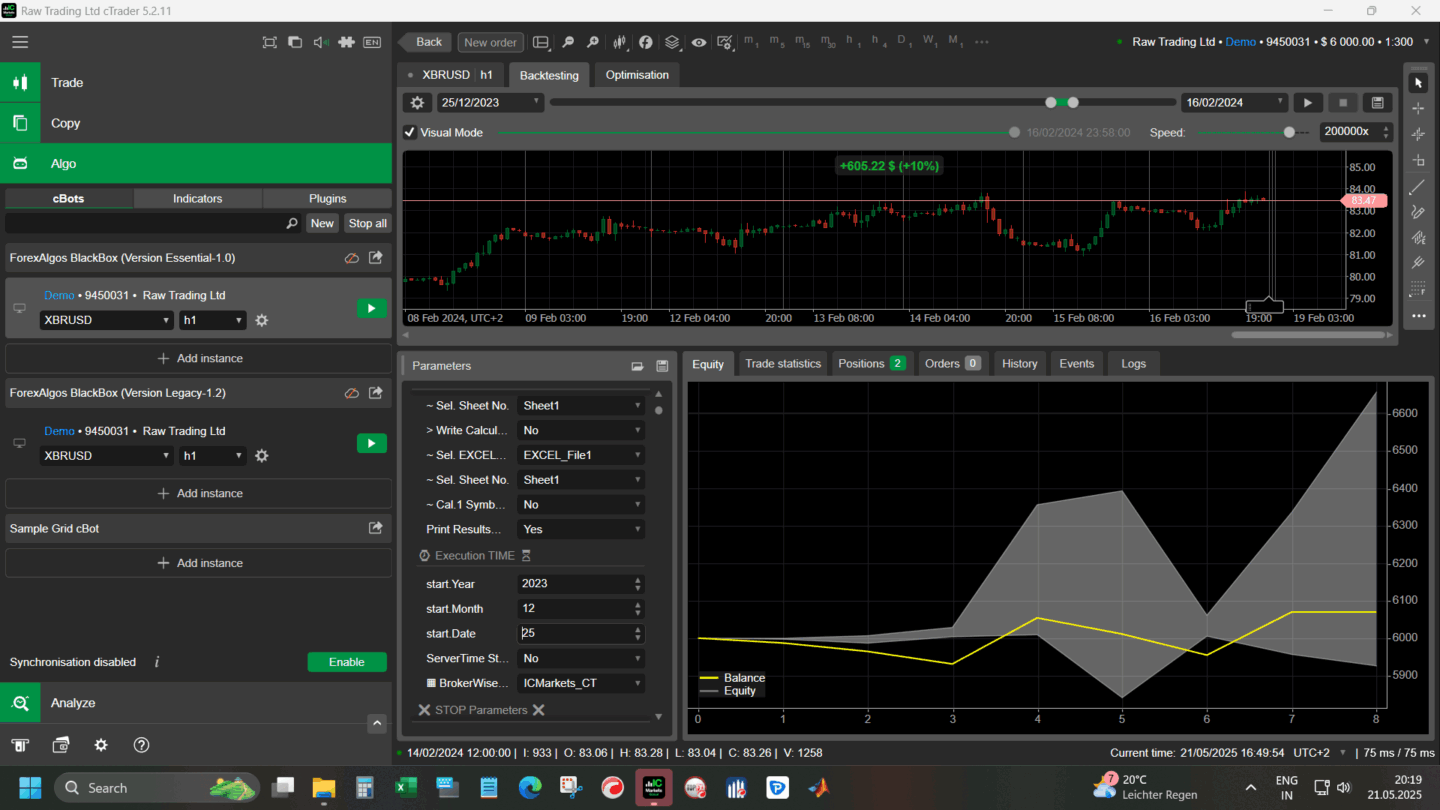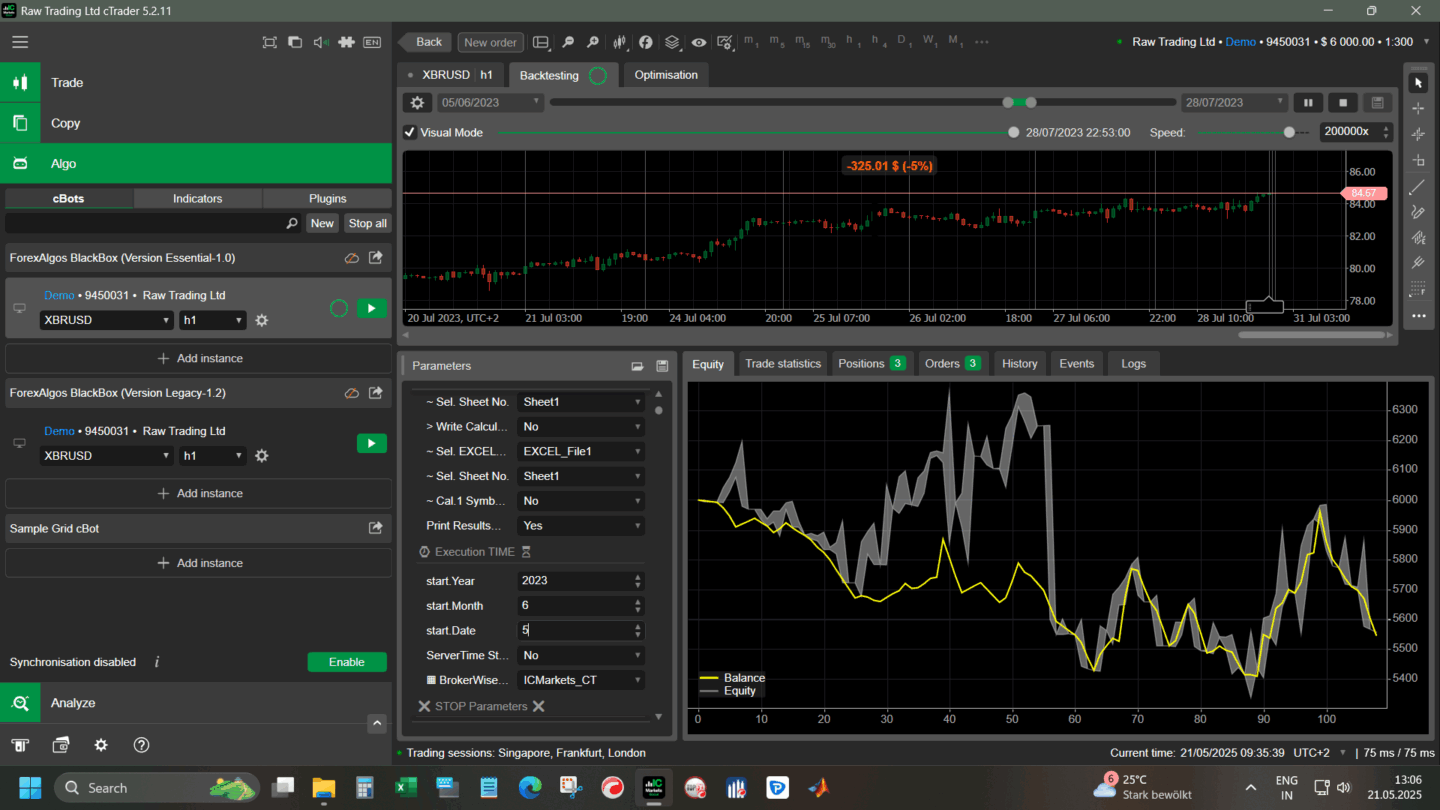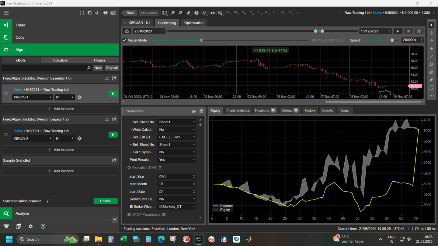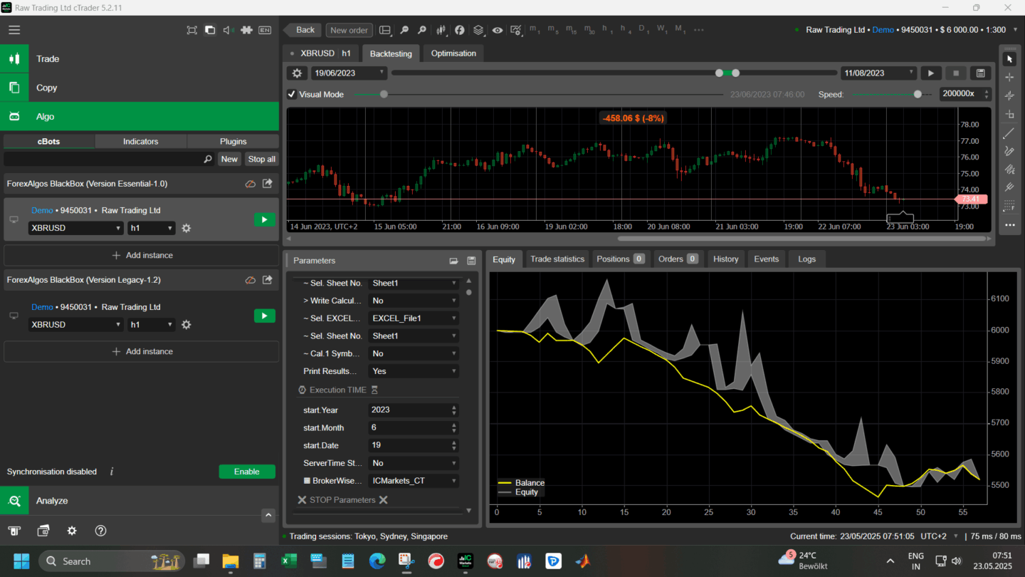 Backtest Results. At ForexAlgos, we believe that trust is built on evidence. That’s why our AI-powered trading system—ForexAlgos BlackBox—comes with detailed, independently verifiable backtest results for the years 2023, 2024, and 2025. We want prospective and current members to know that our performance claims are not based on vague estimations, marketing hype, or cherry-picked trades. Instead, we present structured, transparent data from rigorously backtested trade sessions across three consecutive years.
