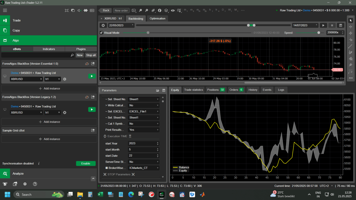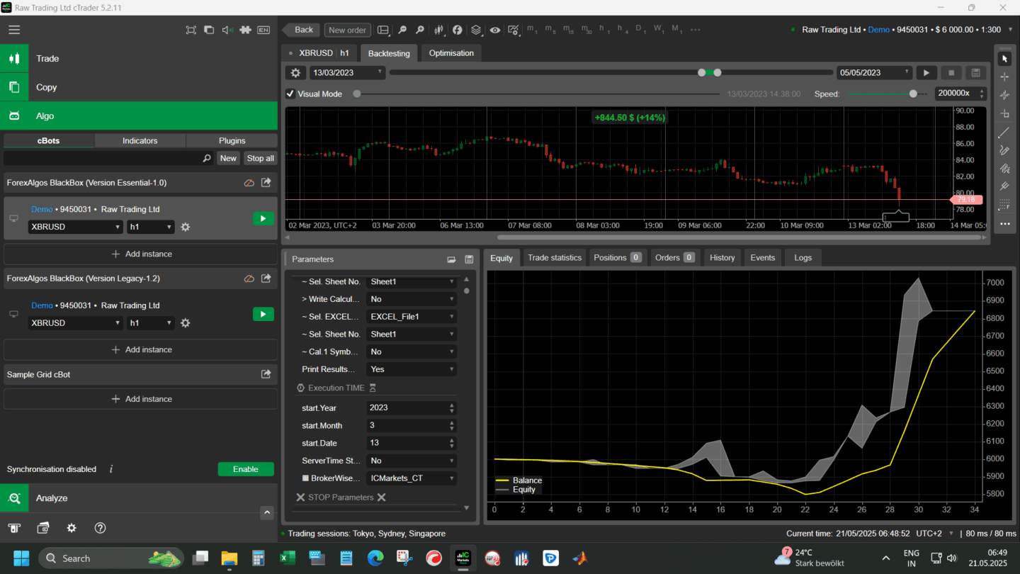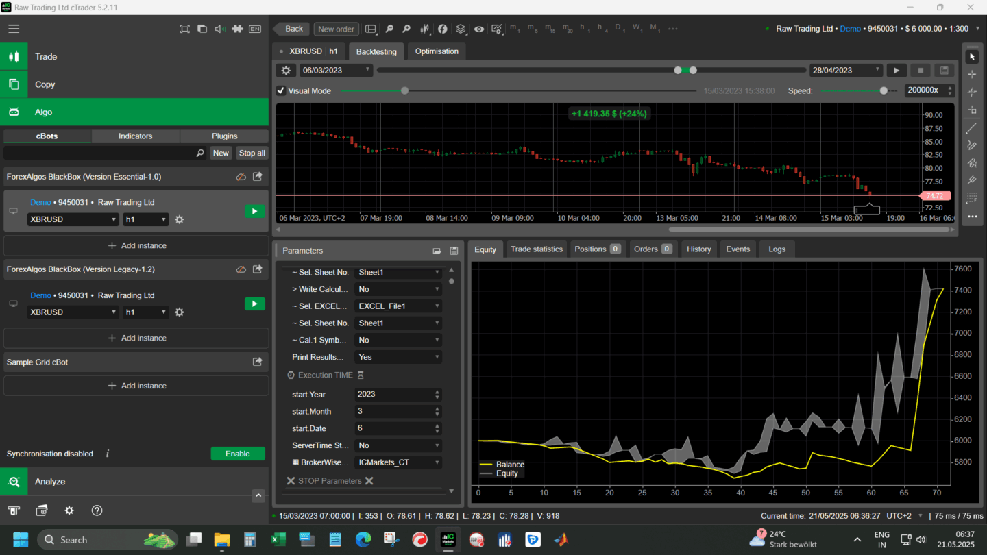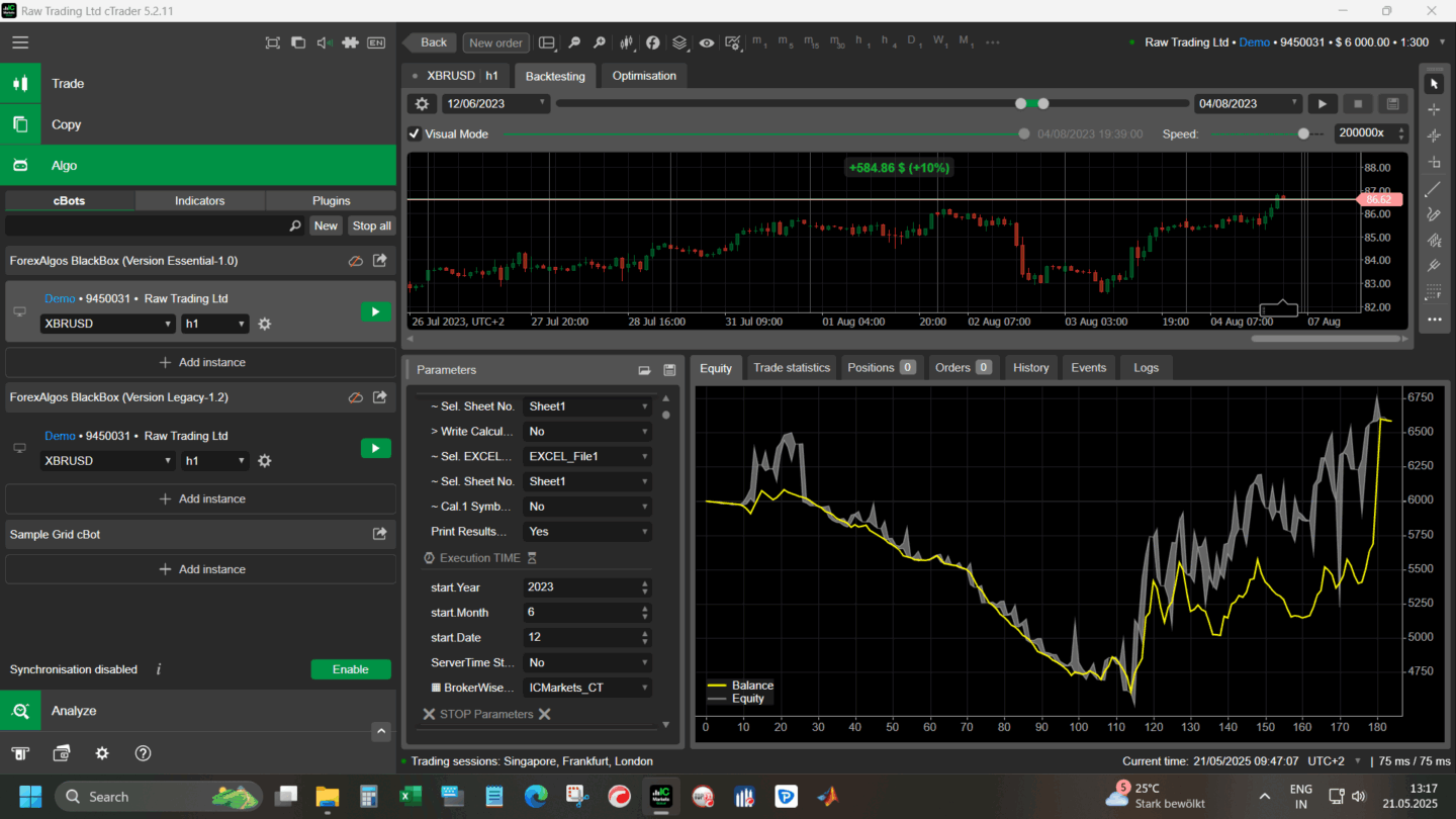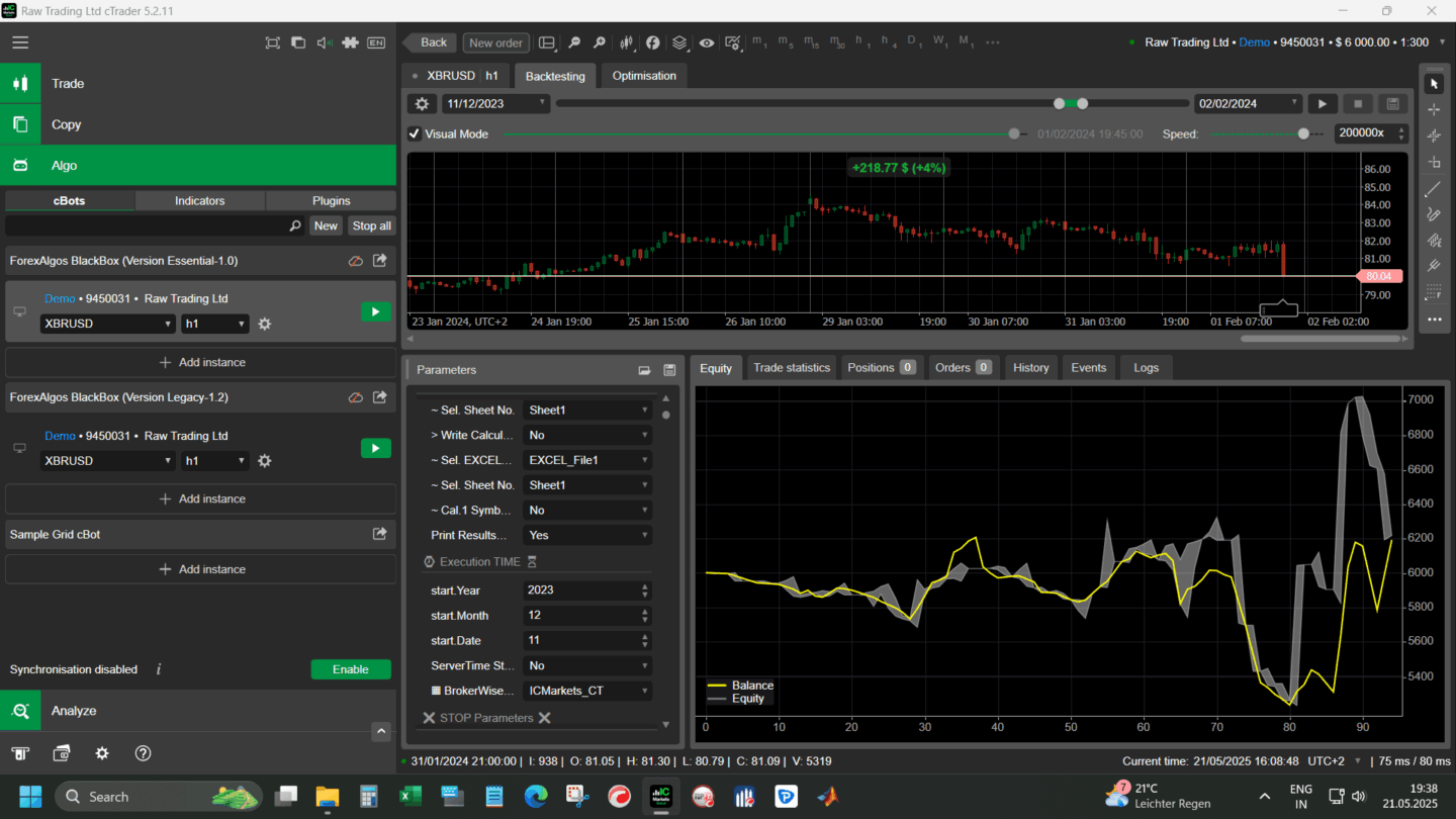 Backtest Results. At ForexAlgos, we believe that trust is built on evidence. That’s why our AI-powered trading system—ForexAlgos BlackBox—comes with detailed, independently verifiable backtest results for the years 2023, 2024, and 2025. We want prospective and current members to know that our performance claims are not based on vague estimations, marketing hype, or cherry-picked trades. Instead, we present structured, transparent data from rigorously backtested trade sessions across three consecutive years.